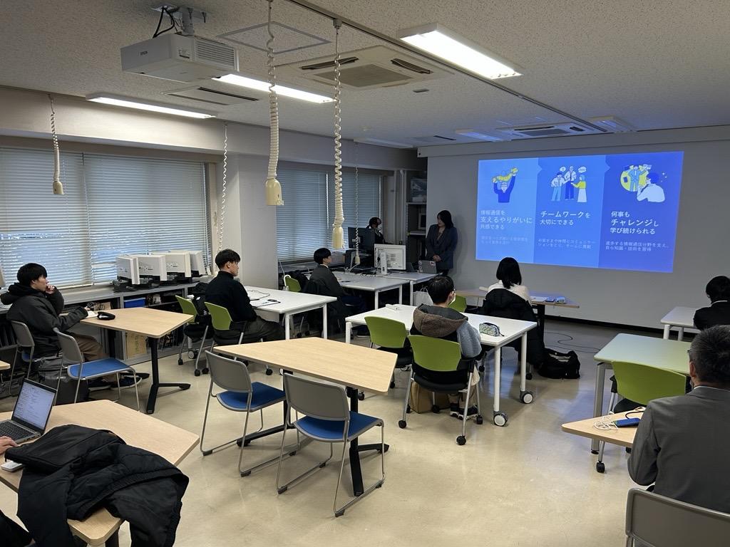 株式会社NTT-ME様より、EE学科卒業生の関瑞姫さん、林佳璃さん、Ci学科卒業生の若月芽衣さん、