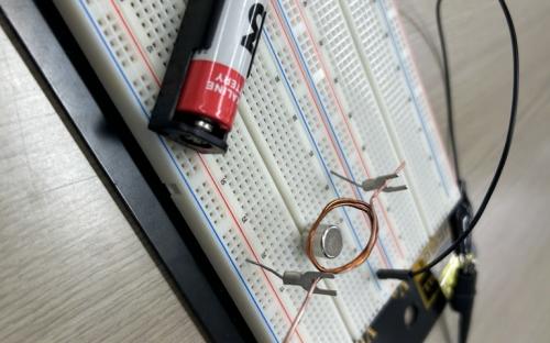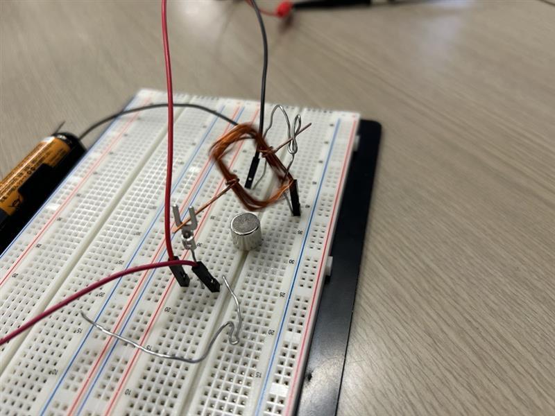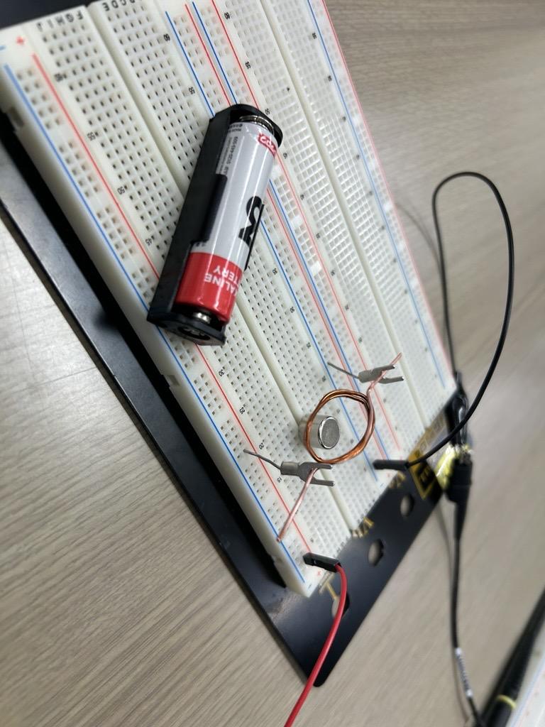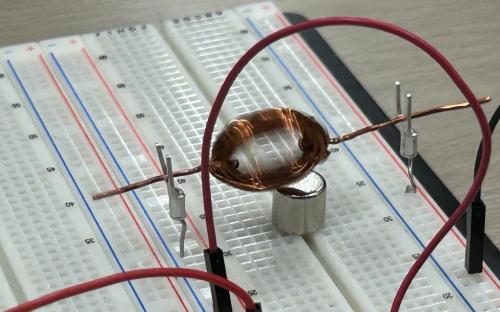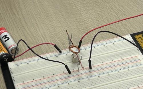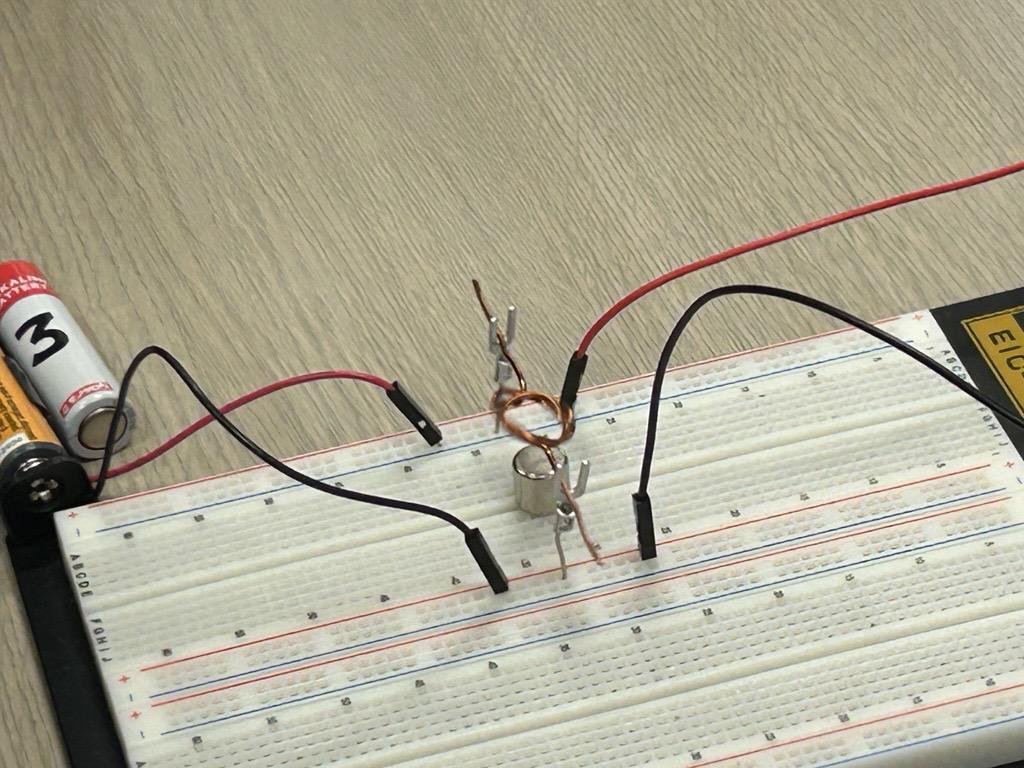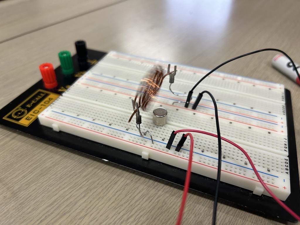 短い時間の実験の中で、コイルの巻き方、大きさの条件を振って回転状況を確認し、最も早く回る条件を見出したそうです。
