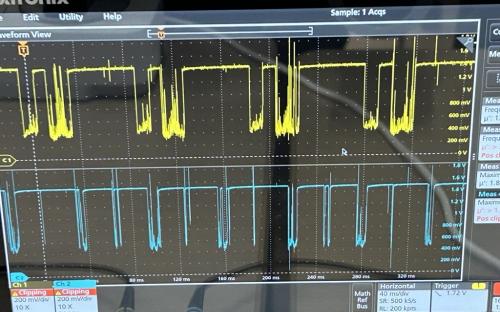 すると回転しているコイルにかかる電圧をオシロスコープで観測すると、