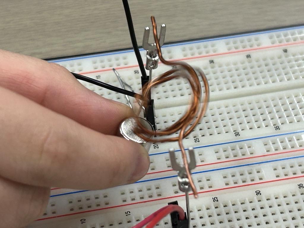 この"一部"を取り除くのがポイントです。コイルがちょうど磁石に一番近くなる時に、