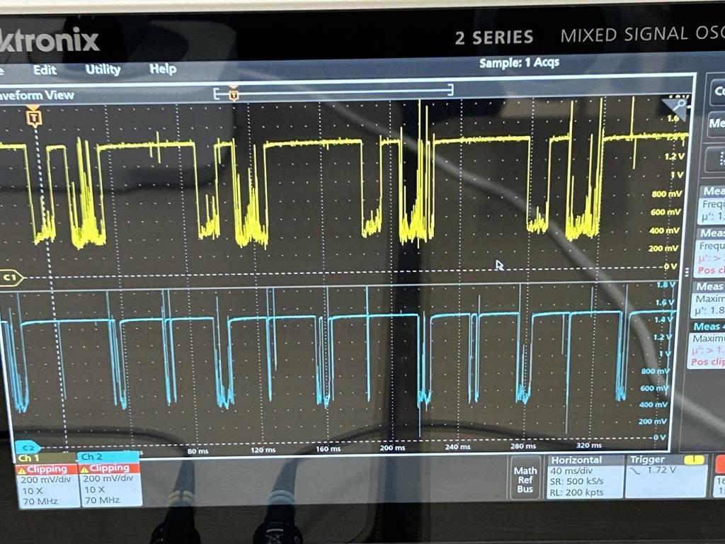 その波の間隔でコイルが回る回転数が目で見てわかる。