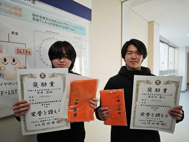 「 奨励賞 長岡工業高等専門学校 バドミントン部。 成績、第六十回全国高等専門学科応体育大会バドミントン競技 男子団体において第5位の成績を収めました。