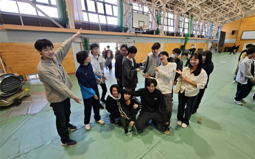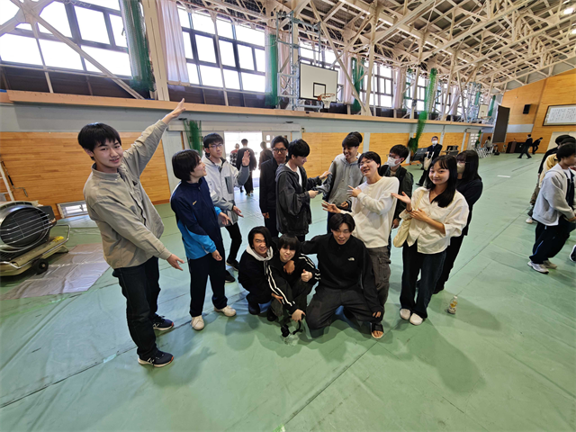 始業式のあとで、みんなで谷内田君を囲んで写真撮影です!