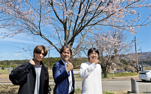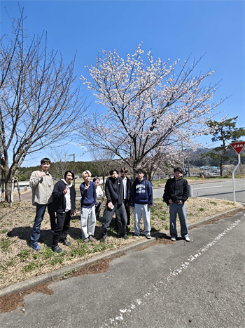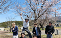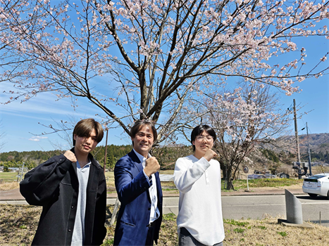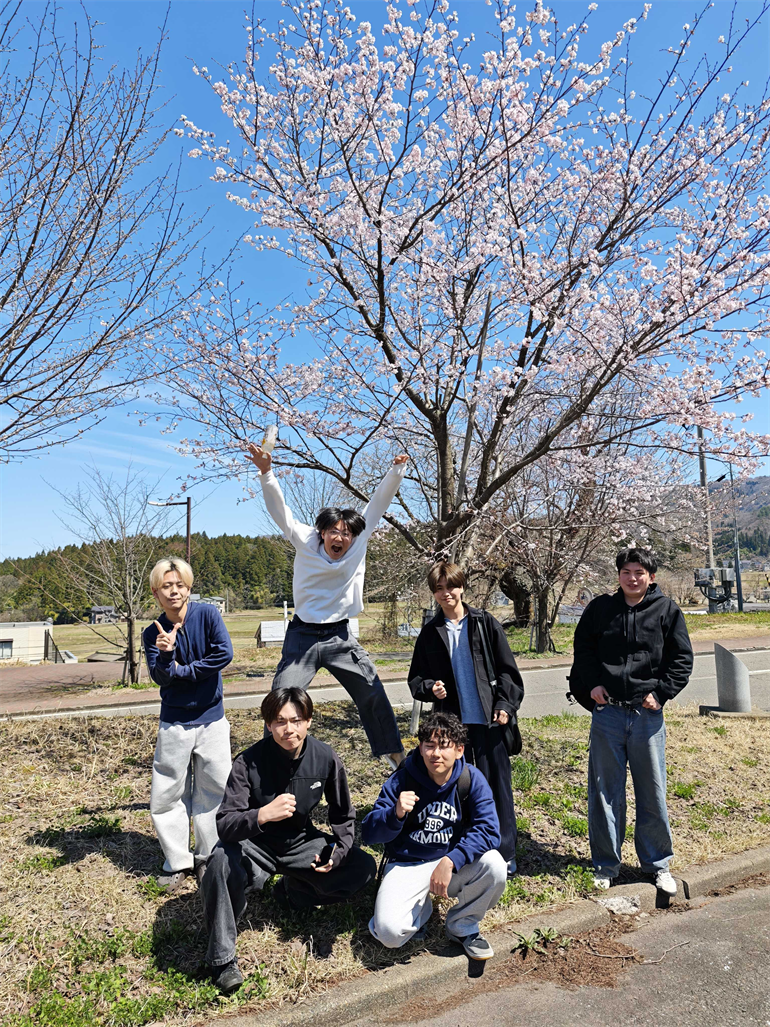 そとにでると、桜が咲いていました。ついでに記念写真もとりました!